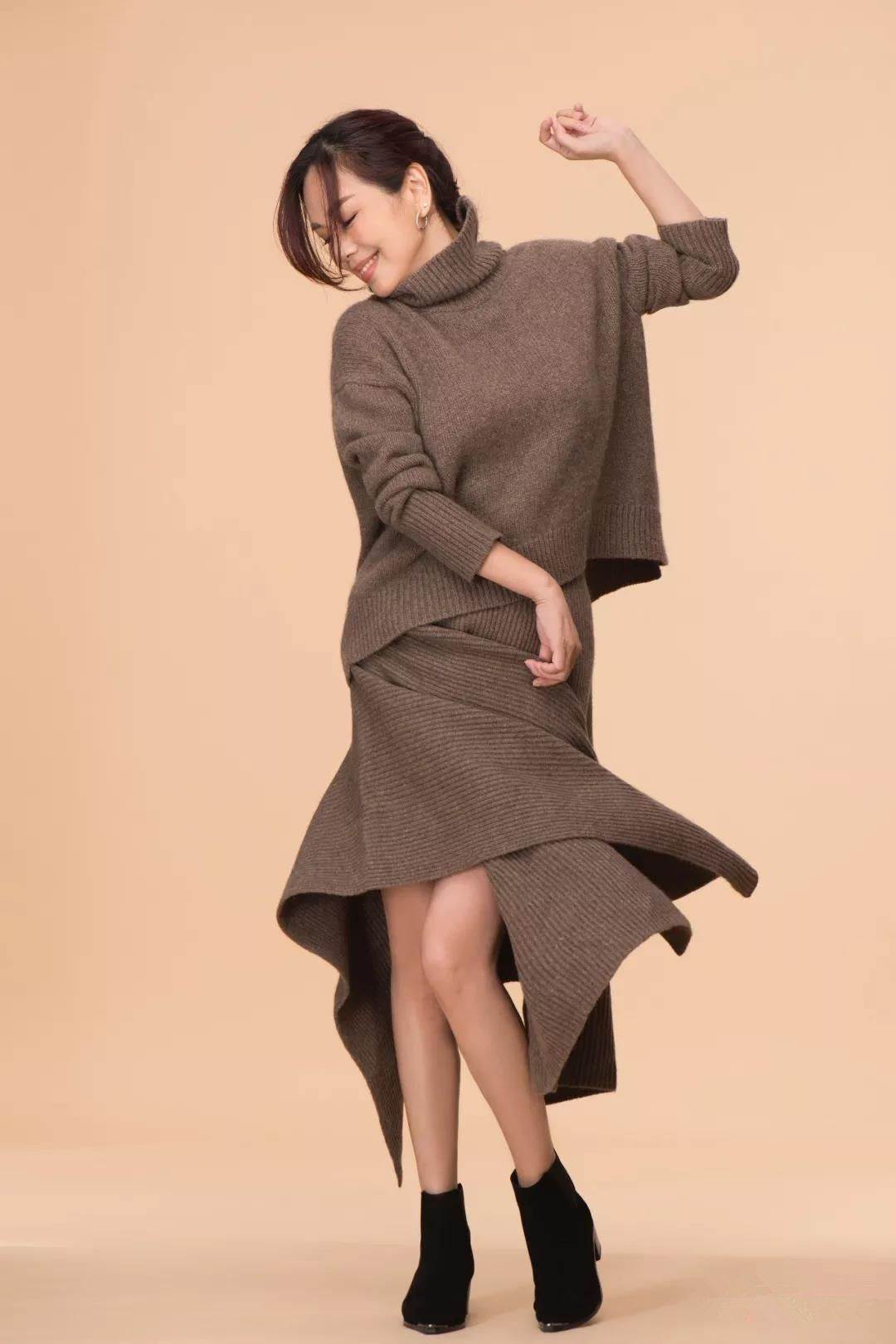 聽過毛衣毛褲,但是大家有沒有聽過毛裙呢?反正俺是第一次見,裙子穿法也是很時髦,荷花裙邊獨特的設計也是超有內涵,pose很美,黑色鞋拉高整體的比例,顯腿長!